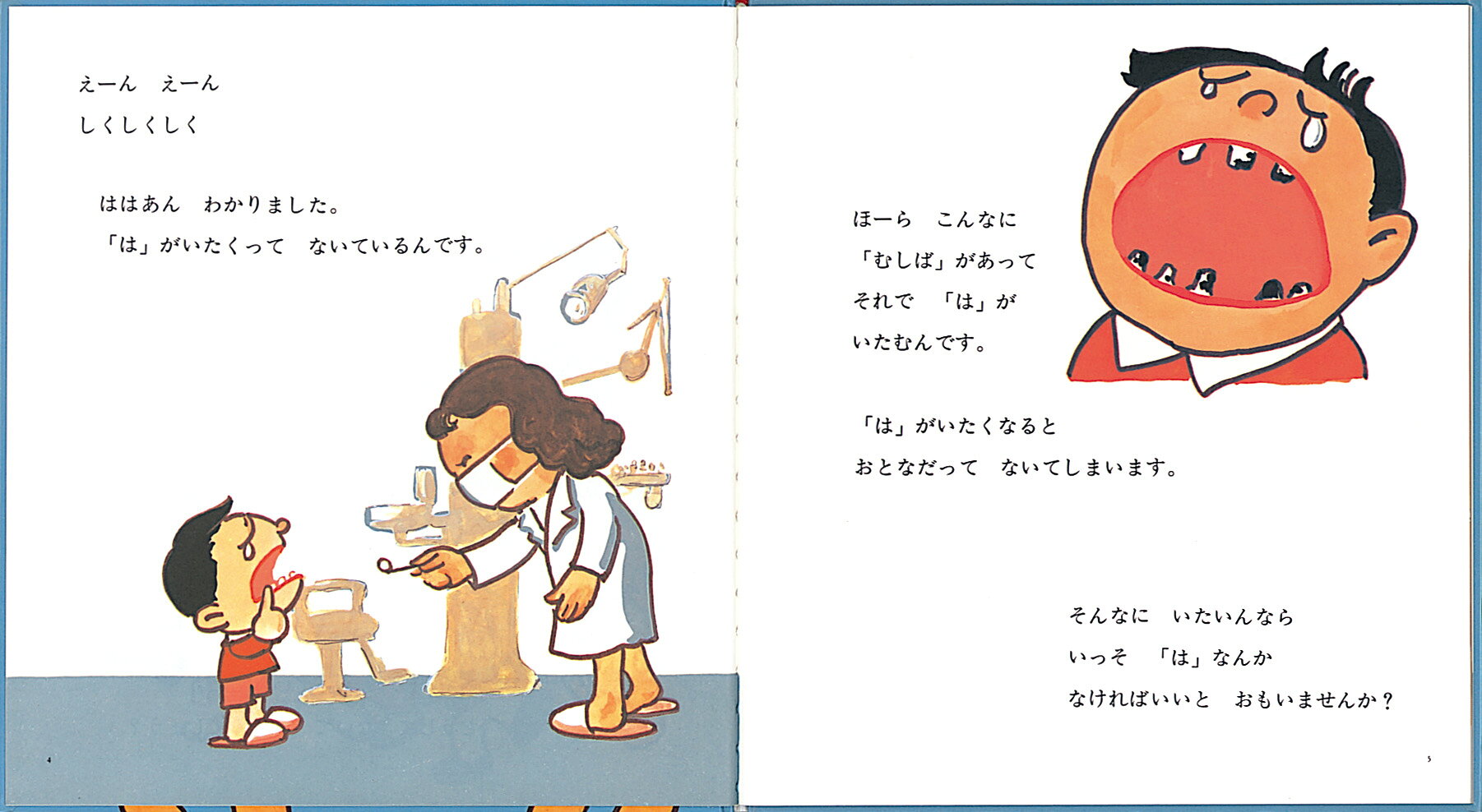 私が子供の頃読んでとても印象に残っていた本です。4歳の息子に読んでみましたが、白かった歯が虫歯になりどんどん黒く小さくなっていく様子が怖かったようで、それ以来真面目に歯磨きをしています。