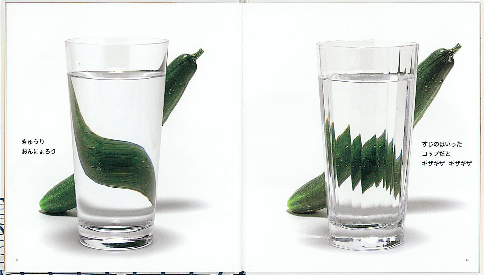 たねもしかけもありません。ガラスのコップに水を入れれば、まほうのコップのできあがり。コップの後ろにいちごを置くと……あらら、ぐんにゃりつぶれちゃった! 見る角度を変えたり、置いたものを横に動かしたりしても、あっと驚く変身が見られます。コップとものの距離によっても、見え方が変わりますよ。子どもだけでなく、おとなも思わず夢中になります。ぜひためしてみてください。