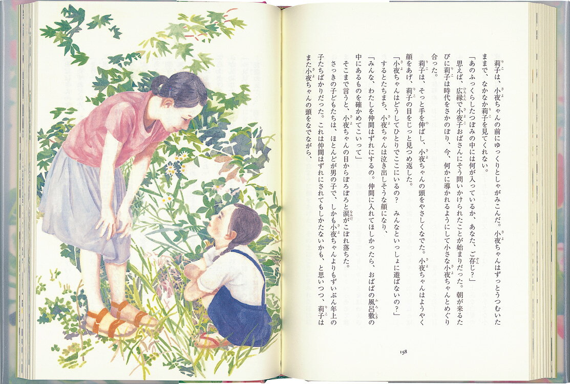 美しい情景描写とともに描かれる過去への旅を通して、主人公莉子は、さまざまな人の想いに触れます。綿々と続いてきた、この家で暮らした人々のつながりの先頭にいる莉子。その莉子に手渡された想いが、どのような形をとって「今」に現れるのか。その鮮やかさには思わず息をのみます。気鋭の画家木村彩子さんによる挿絵も、見どころの1つ。一見水彩のようにも見える木村さんの油彩が、この美しく優しい物語の世界と見事に響き合います。この作品を読み終えると、きっと、私という人間が、いまこうしてここにあることの不思議を思い、そして懐かしいあの人に会いたくなります。