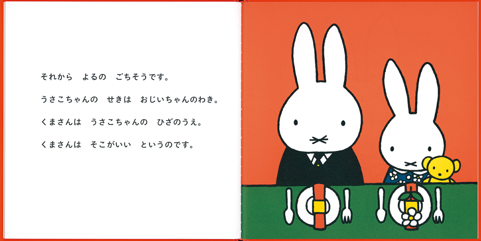 今日はうさこちゃんの誕生日。お父さんとお母さんはうさこちゃんに「誕生日おめでとう!」といいます。