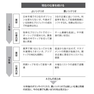 現在の仕事を続けるか新しい仕事に就くか、判断に迷うこともあるでしょう。未来を見通し、思考を整理してより良い判断をするための、トレーニング事例を紹介。