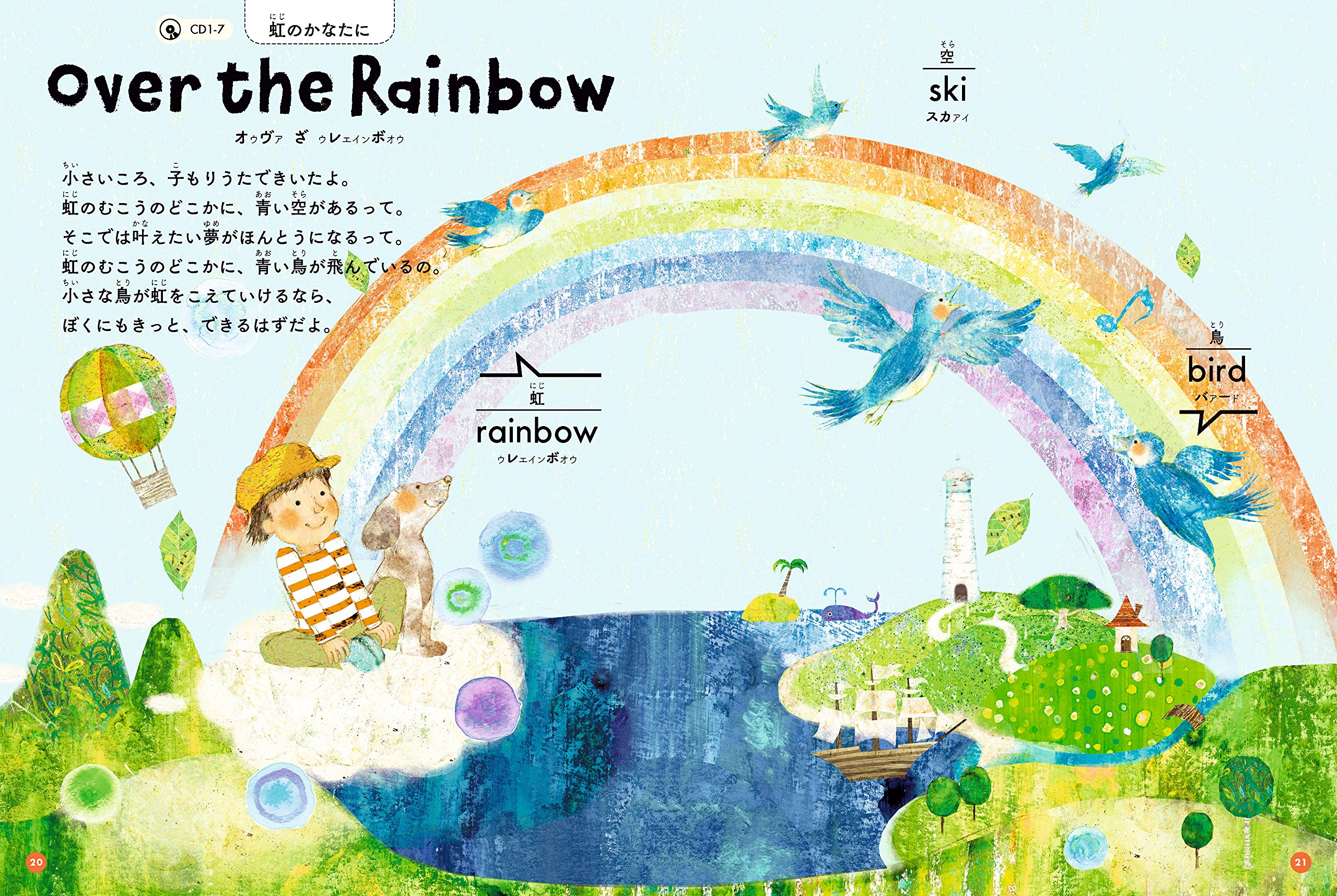 楽しい英語の歌(ミュージカルの有名曲や海外の童謡など)を45曲収録したCD2枚がついた子ども向けの絵本。発音の良いリズミカルな英語の歌で「聴く力」や「外国語への好奇心」が養われます。各曲ごとにイメージを膨らませる素敵な挿画とテキストつき。「トゥモロー」「私のお気に入り」「雨に唄えば」などの有名曲がたくさん!脳科学者・茂木健一郎さん、作家・松本侑子さん他の推薦エッセイつき!内容紹介(情報提供:絵本ナビ)
