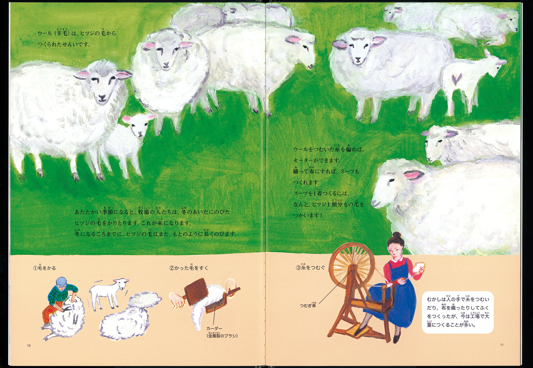 日々、身に着けている服。その素材に思いをはせる絵本です。