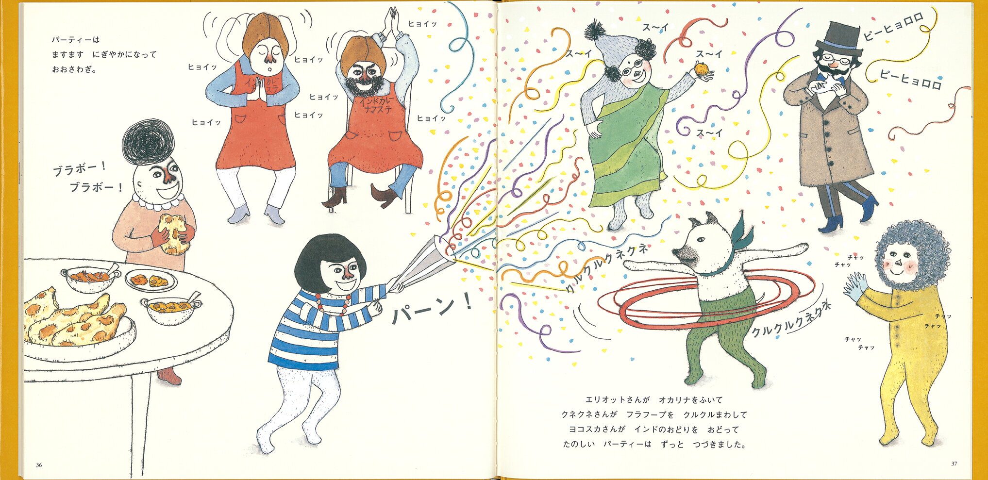 さあ、ページをめくって、クネクネさんと一緒に楽しいパーティーに出かけましょう!