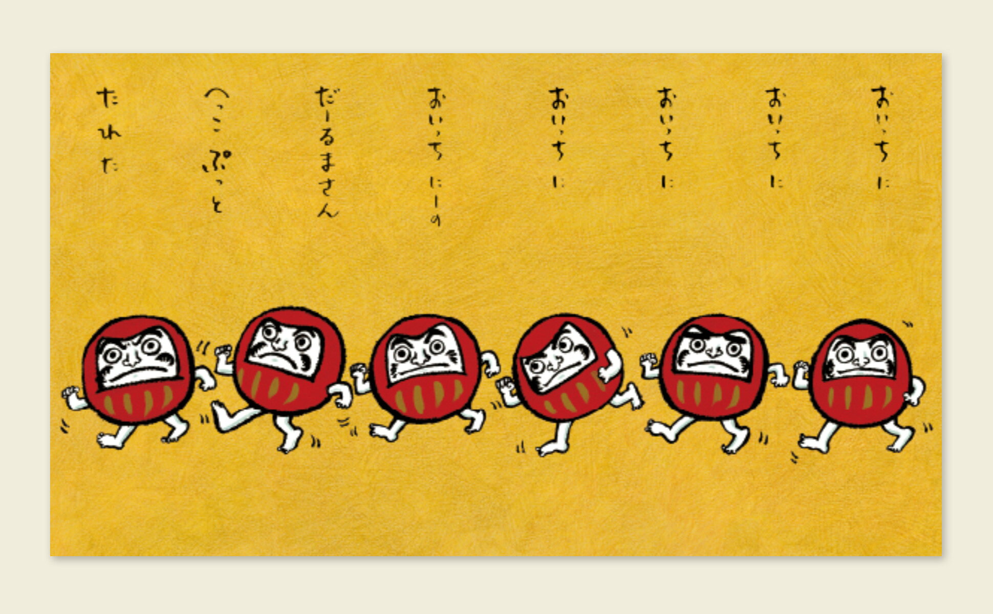 『これはとってもかわいくて私が大好きなわらべうたです。「おいっちに」という言葉は文字で見ても誰もがイメージできますし、絵本にぴったりだと思いました。