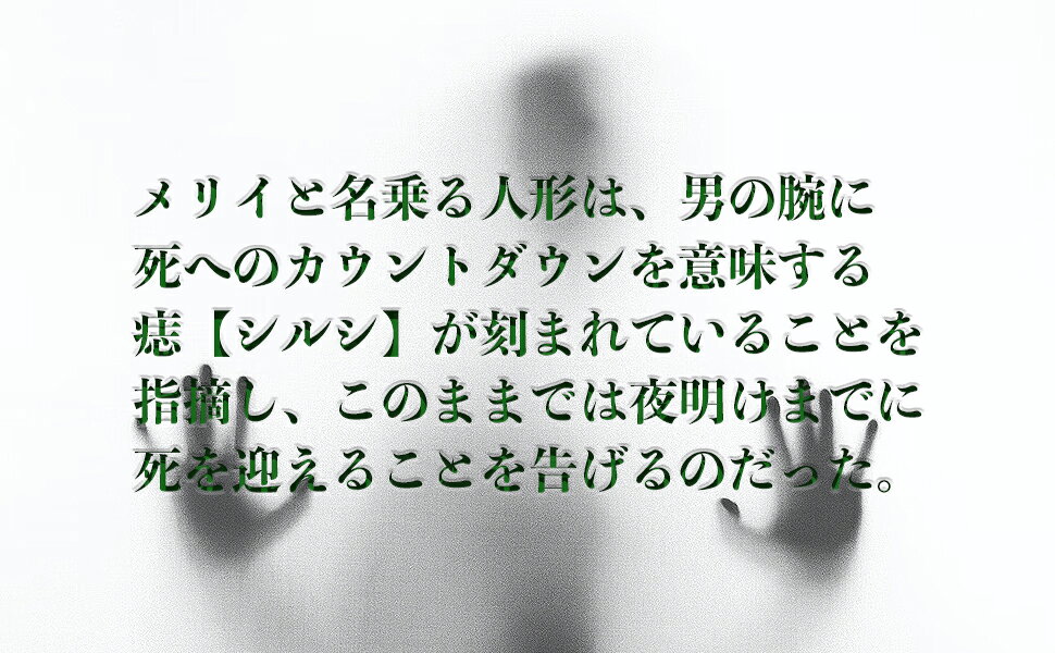 メリイと名乗る人形は、男の腕に死へのカウントダウンを意味する痣【シルシ】が刻まれていることを指摘する。