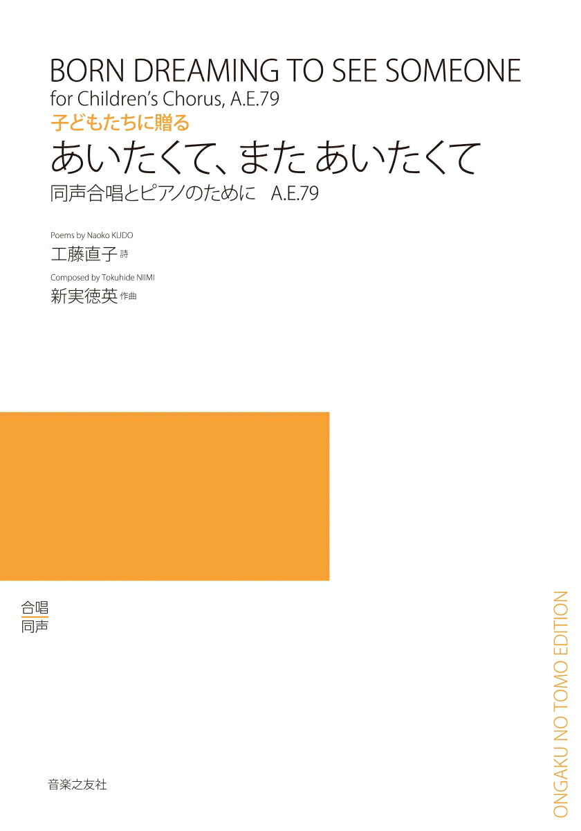![同声合唱とピアノのためのあいたくて、またあいたくて子どもたちに贈るA.E.79[工藤直子]](https://tshop.r10s.jp/book/cabinet/8281/9784276558281.jpg)