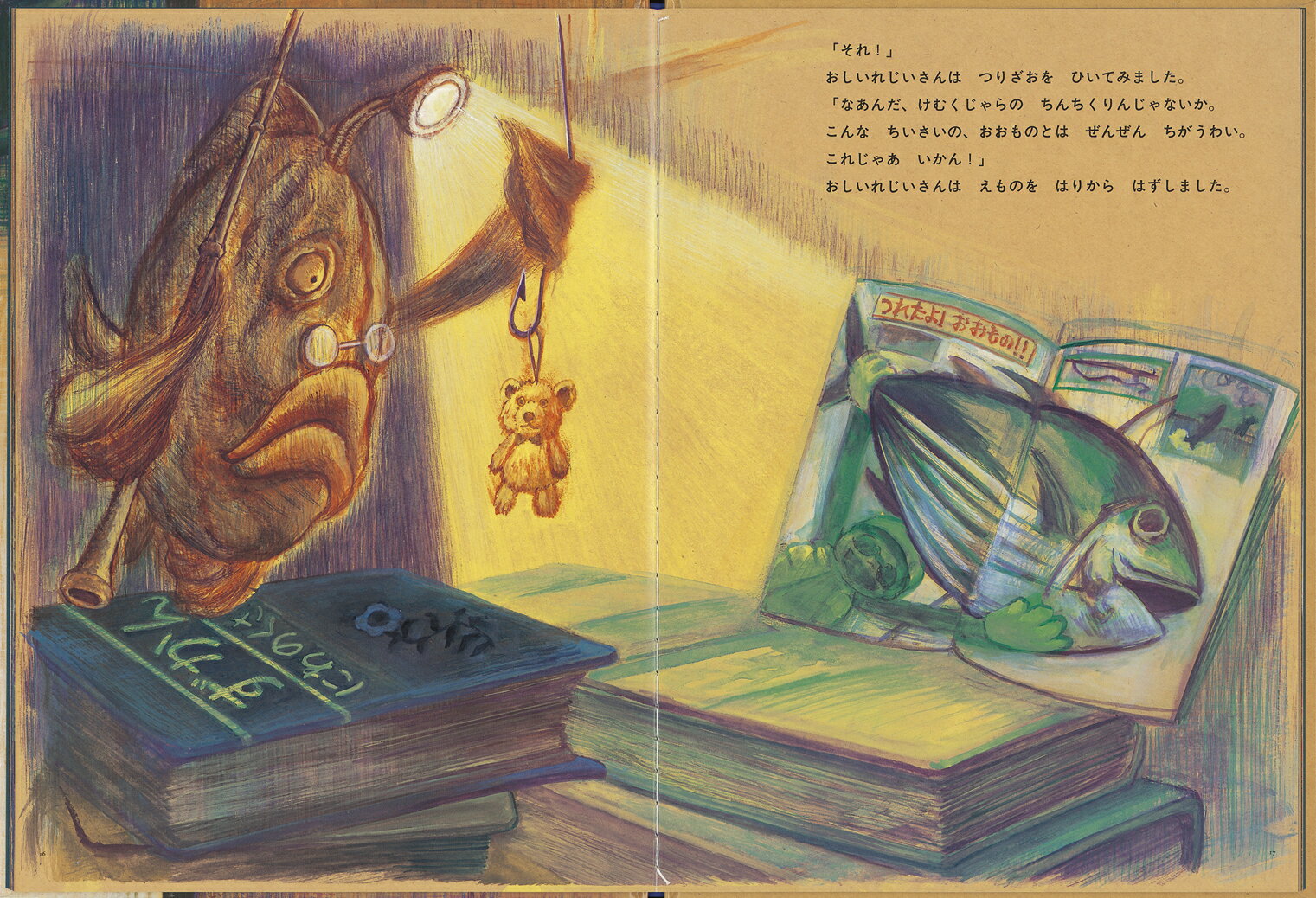 ![]() おしいれじいさん? なんとまあ おしいれじいさんとは けったいな さかなのおじいいさん(メガネかけてる) それが 魚釣りするとは 発想がおもしろい! おじいさんが釣り上げた獲物は? これがまたおもしろい 押し入れの中にある 古いものがつぎつぎ そして ラストは なんと?! こんなのが 押し入れにいるという お話が おもしろい(にぎりすしさん 60代・京都府 ) 【情報提供・絵本ナビ】 |