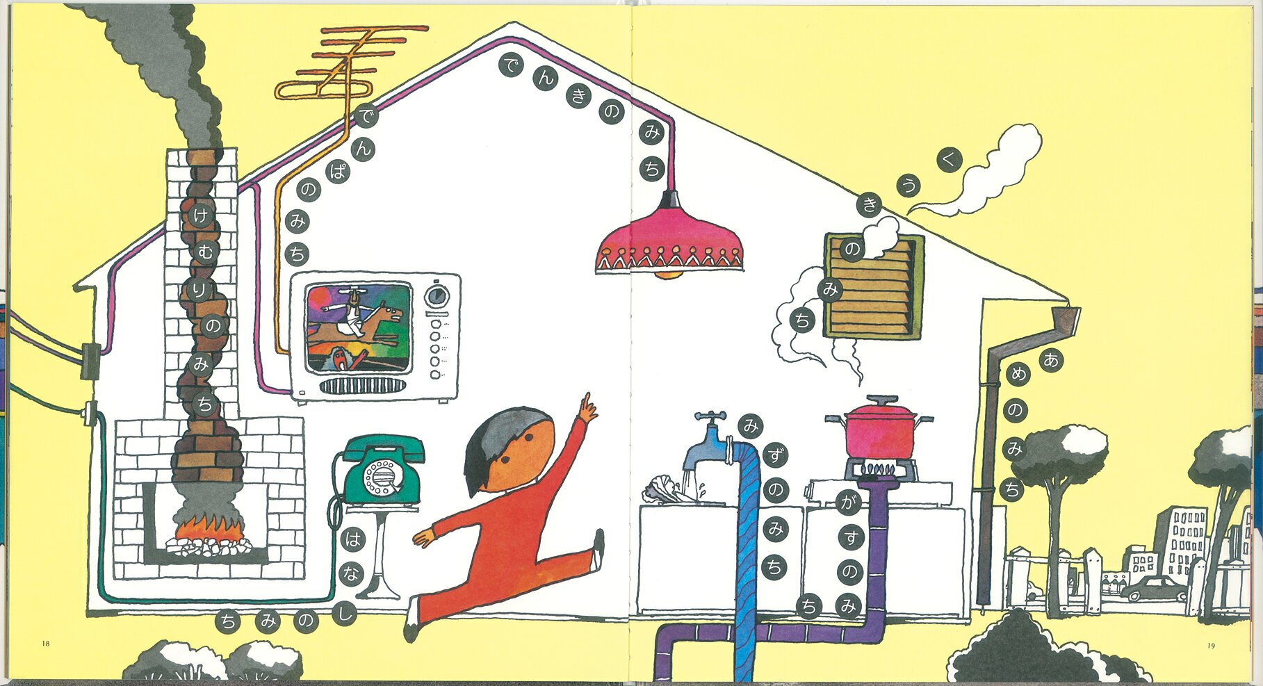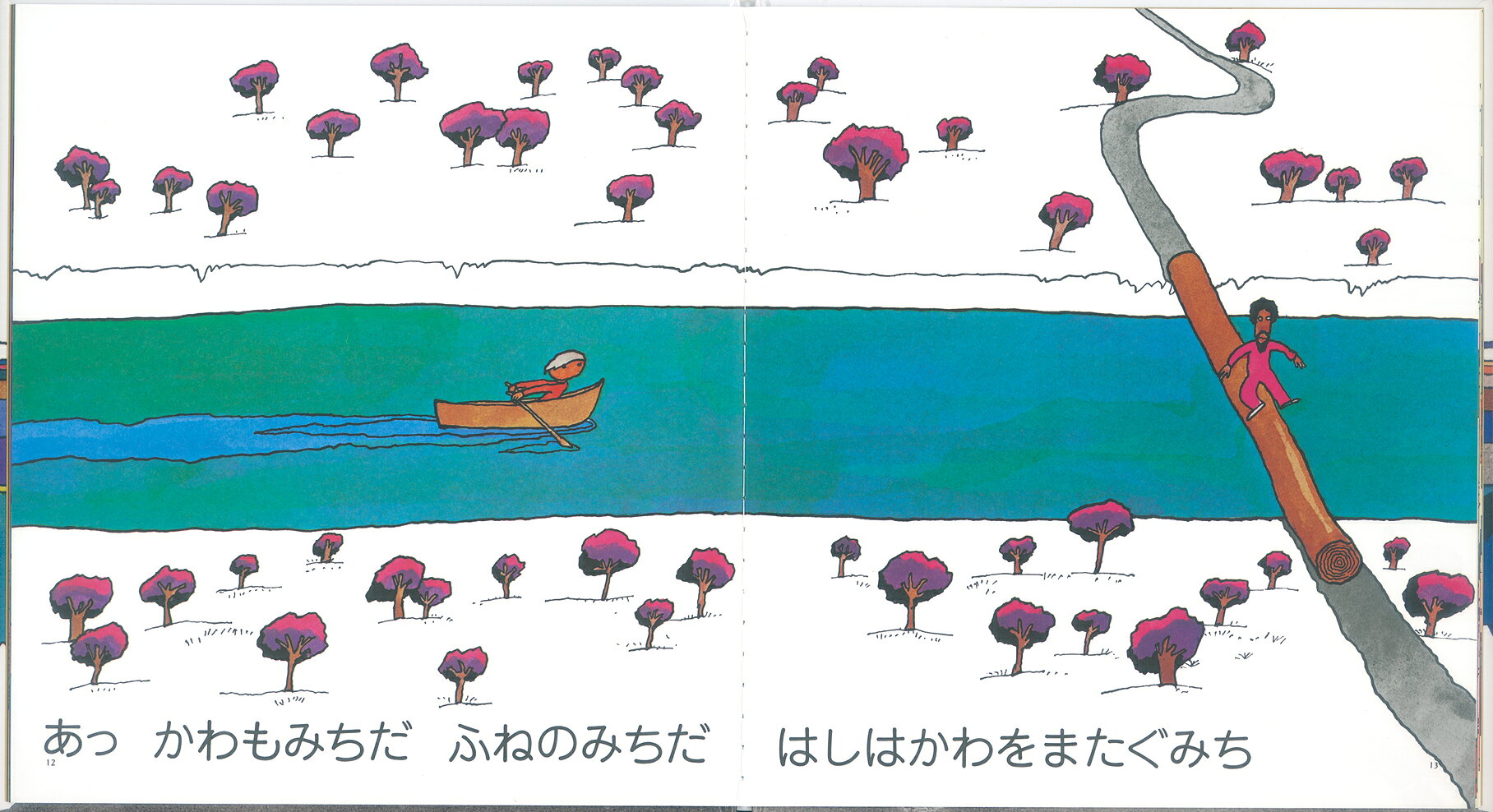 狭い道、広い道、一本道、分かれ道、「人が通る道ではない」道、飛行機の道、汽車の道……と、次々に多様な道を見せていく本作は、分かれ道で立ち止まり、絵本作家の道へ一歩を踏み出したちょうどその頃の、若き日の著者の気概を描いているようにも思えます。