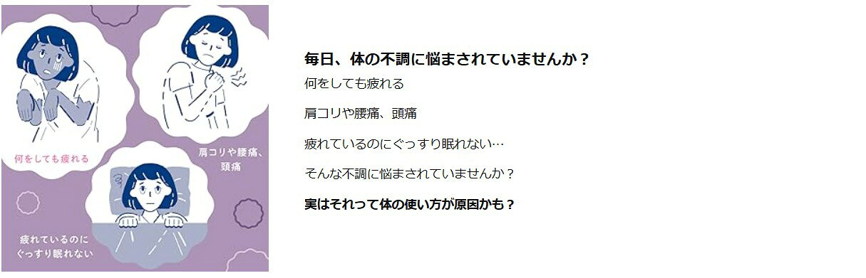 呼吸、デスクワーク、カバンの持ち方など日常のあらゆる動作を網羅しています。