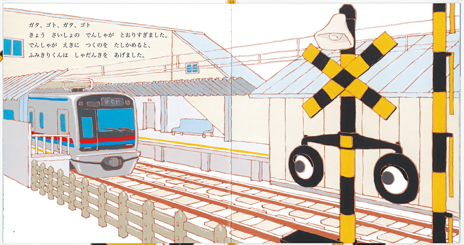 ある日、いつもどおり働くふみきりくんのもとに、先を急ぐトラックが猛スピードで走ってきました。
