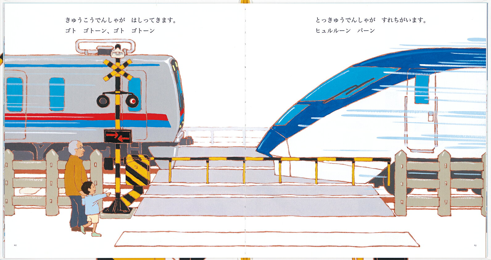 NHK で紹介された絵本でした。千葉の実在する海神駅のそばの踏みきりだそうですね。いつも気にしない踏みきりに視点をおいて面白いなと思いました。孫に読み聞かせます!