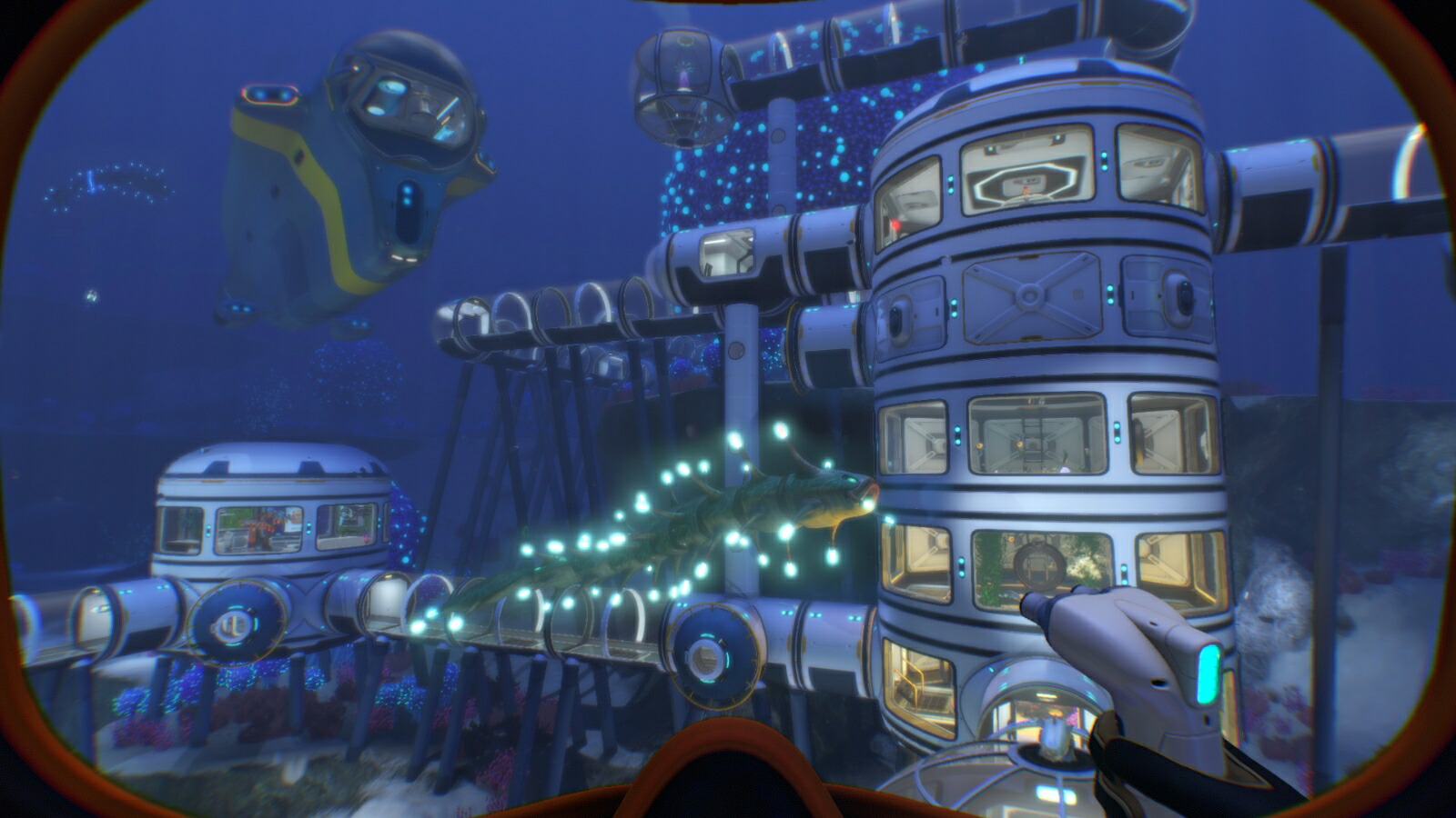 探索を進めれば、快適な基地を作って魚を飼うこともできるし、 行動範囲を大幅に広げてくれる潜水艦だって作ることができる。