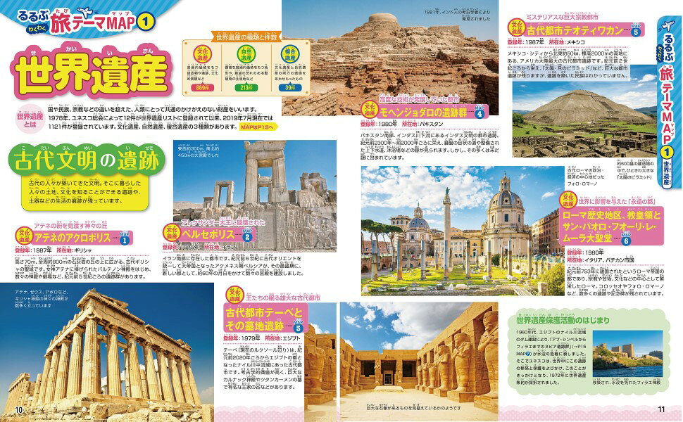 るるぶわくわく旅テーマMAP(世界遺産/世界のお祭り/世界のスポーツとオリンピック ほか)/データでわかる!世界の国(世界の地形/世界の気候/世界の人口 ほか)/世界の州と国を見てみよう(アジア/ヨーロッパ/北アメリカ ほか)