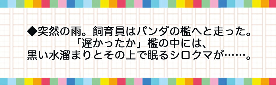 ◆突然の雨。飼育員はパンダの檻へと走った。「遅かったか」檻の中には、黒い水溜まりとその上で眠るシロクマが……。