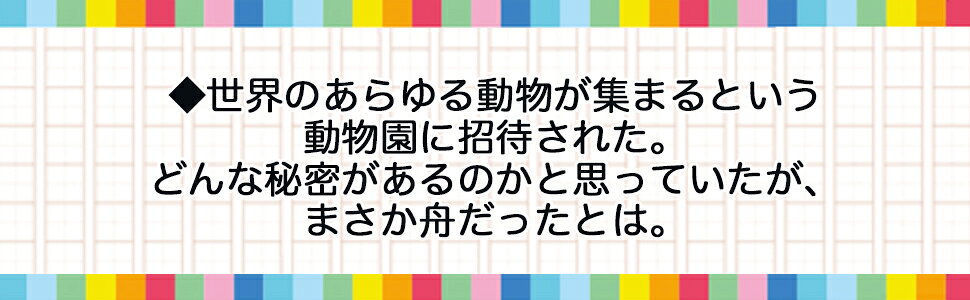 ◆世界のあらゆる動物が集まるという動物園に招待された。どんな秘密があるのかと思っていたが、まさか舟だったとは。