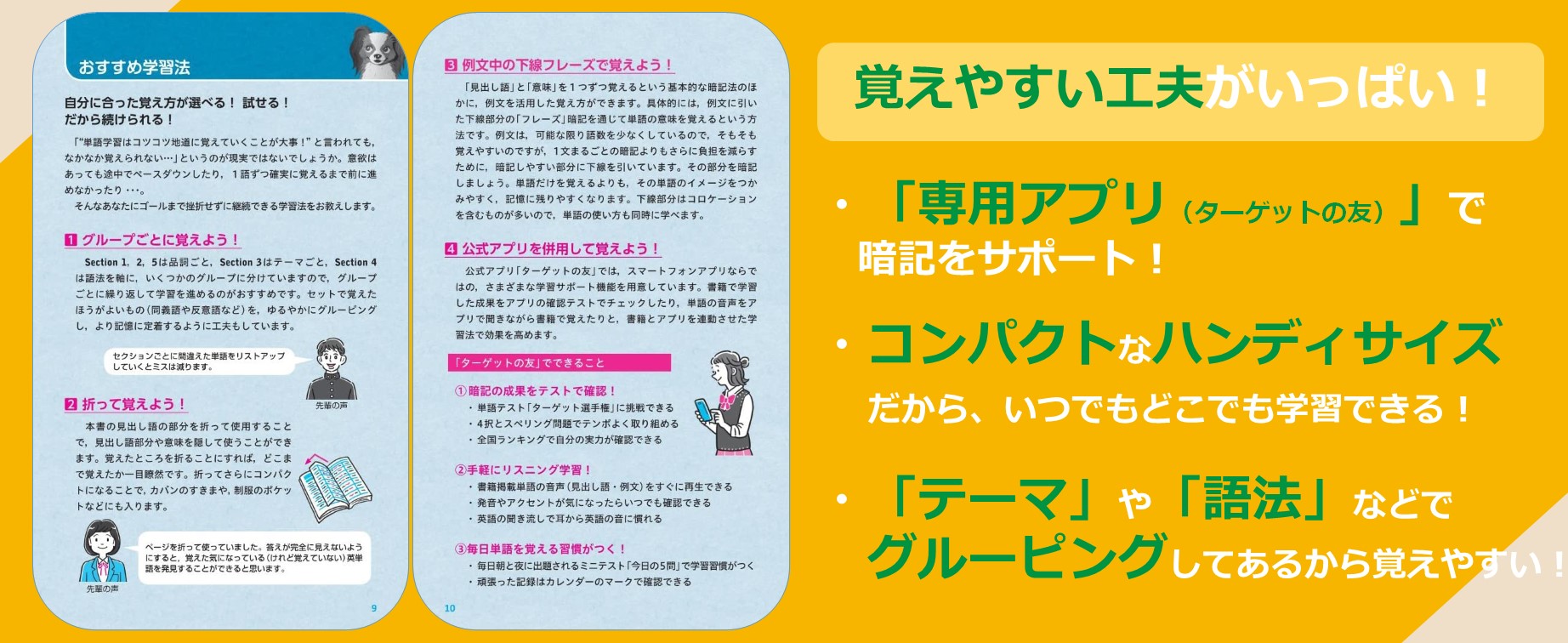 無料公式アプリ「ターゲットの友」(iOS/Android対応)は,様々な学習サポート機能があり,書籍とアプリを連動させた学習法で効果を高めます。