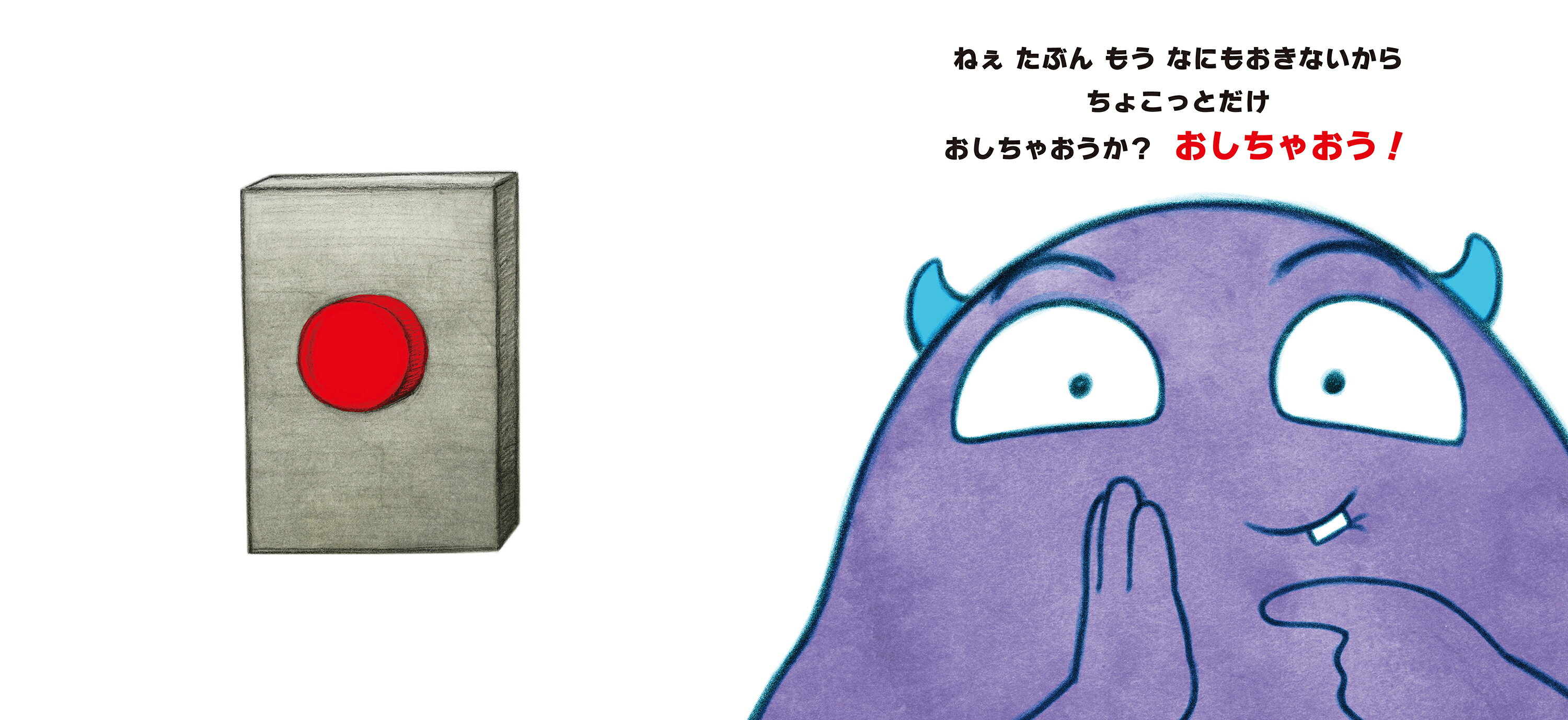 このえほんには1つだけルールがあるよ。それはこのボタンをおしちゃダメということ。このボタンのことをかんがえてもダメ。できるかな?2〜6歳児向け。