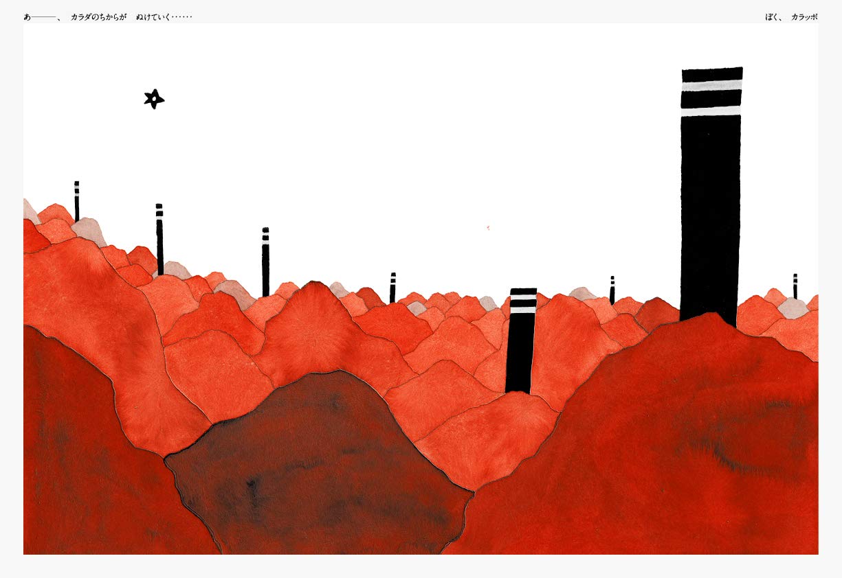 2色のインクで描かれた力強く個性的な絵と、独特なリズムをもつシンプルな言葉で作られた世界は、ページをめくるあなたの想像力を呼び覚まします。