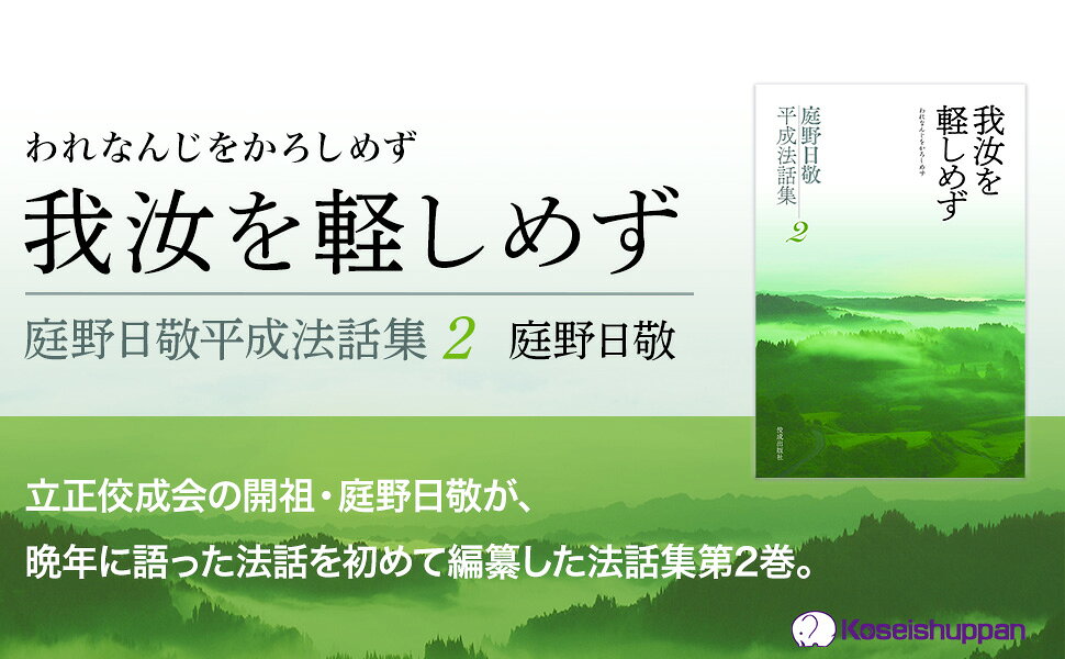 立正佼成会の開祖・庭野日敬が晩年に語った法話を初めて編纂した法話集。 シリーズ第2巻は、法華三部経が説く要旨にふれながら、すべての人に具わっている「仏性」(仏になれる性質)を拝み合って生きる大切さ、法華三部経を学び実践することで得られる境地を、自身の体験を交えながらあきらかにしていく。己の仏性を開花させ、他者の仏性を拝み出していくことが信仰者のあり方であり、人に喜ばれる生き方がもっとも自身を成長させ、明るく人生を歩む秘訣であると指し示す。カラー口絵付き。書名の「我汝を軽しめず」は『法華経』常不軽菩薩品にある一節。
