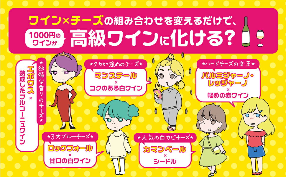 本書では、複雑な組み合わせを、チーズを擬人化?ワインを洋服化し、わかりやすく解説します。
