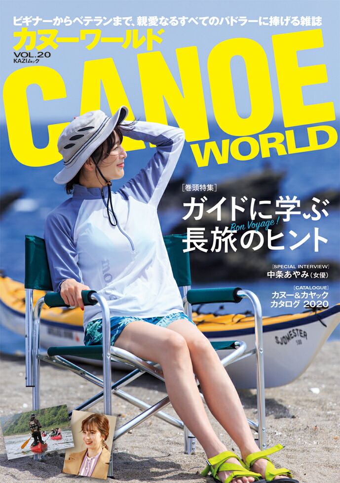 『カヌーワールド』VOL.20の巻頭特集は、「Bon Voyage ! ガイドに学ぶ長旅のヒント」。長期ツアーを実施しているガイドたちから、長旅に役立つさまざまなヒントをもらいます。そのほか、映画『水上のフライト』主演女優、中条あやみさんの「スペシャルインタビュー」、「カヌー&カヤックカタログ 2020」、「ファルトボートに首ったけ! 」、「水辺の漕ぎ語り」、「芳地直美のプカプカ水上散歩」など、魅惑的なコンテンツが揃い踏み!
