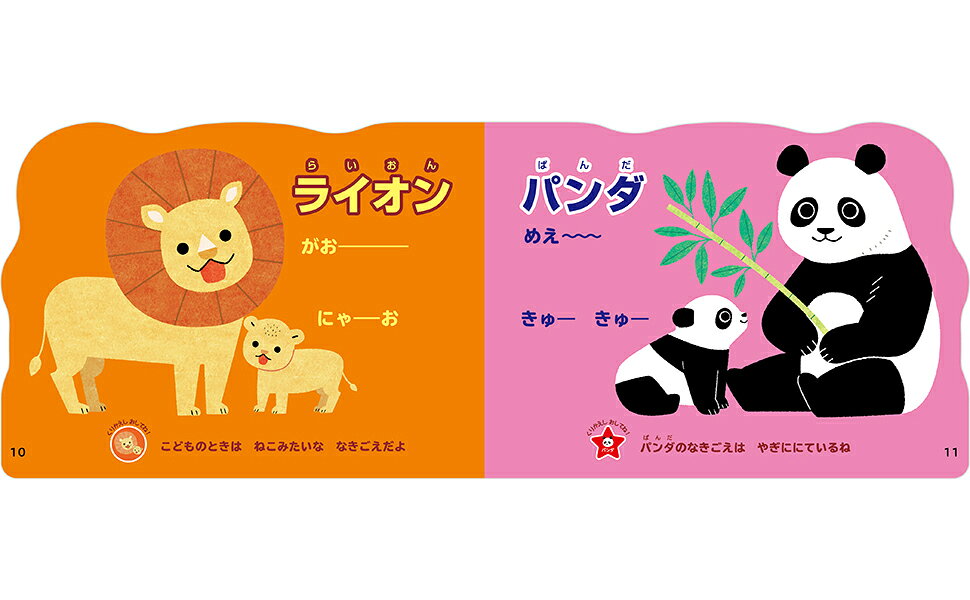 絵本ページでは、動物の名前とイラストに加えて1行程度の説明も掲載し、親子のコミュニケーションのきっかけとしても使えます。表紙は全世代に人気のパンダを採用し、プレゼントにもぴったりです。