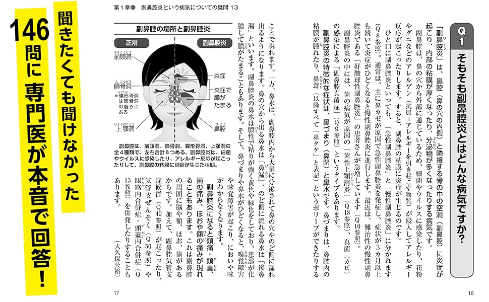 第1章 副鼻腔炎という病気についての疑問13/第2章 副鼻腔炎を招く原因についての疑問14/第3章 副鼻腔炎の症状についての疑問19/第4章 副鼻腔炎の合併症についての疑問13/第5章 副鼻腔炎の診察・検査・診断についての疑問9/第6章 副鼻腔炎の治療・手術についての疑問9/第7章 副鼻腔炎のセルフケアについての疑問25/第8章 アレルギー性鼻炎・花粉症という病気についての疑問7/第9章 アレルギー性鼻炎・花粉症の症状やセルフケアについての疑問12/第10章 アレルギー性鼻炎・花粉症の治療や手術についての疑問25/第11章