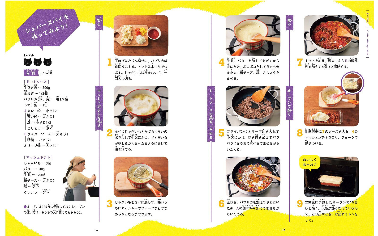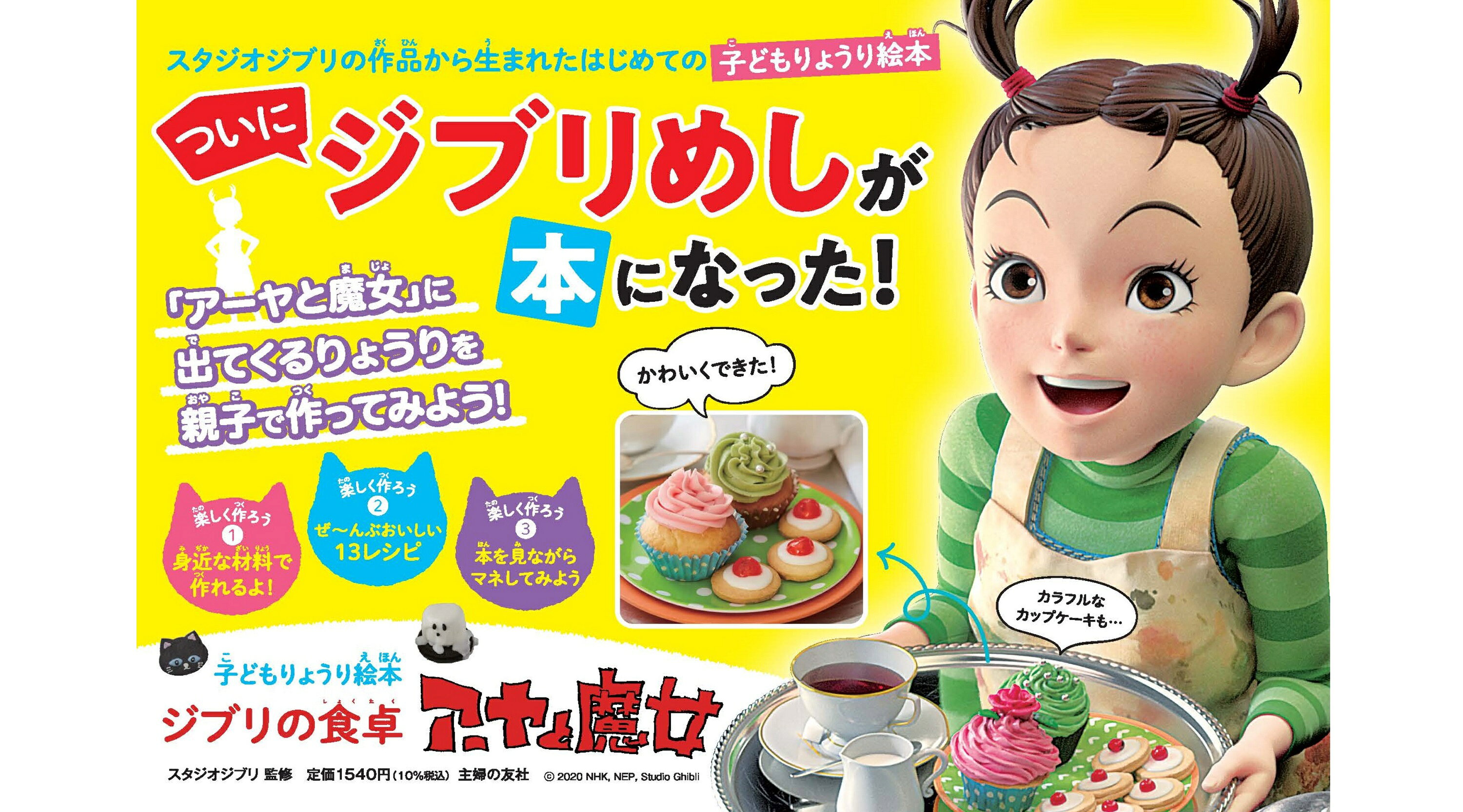 「子どもの家」のコックさんが作るシェパーズパイ、アフタヌーンティーの色とりどりのカップケーキ、あつあつ、ホクホクのフィッシュアンドチップス。…スタジオジブリ最新作『アーヤと魔女』から生まれた、「子どもりょうり絵本」。物語に出てきた食べ物や、物語のイメージからヒントをもらって親子いっしょに作れる楽しいレシピをしょうかい!