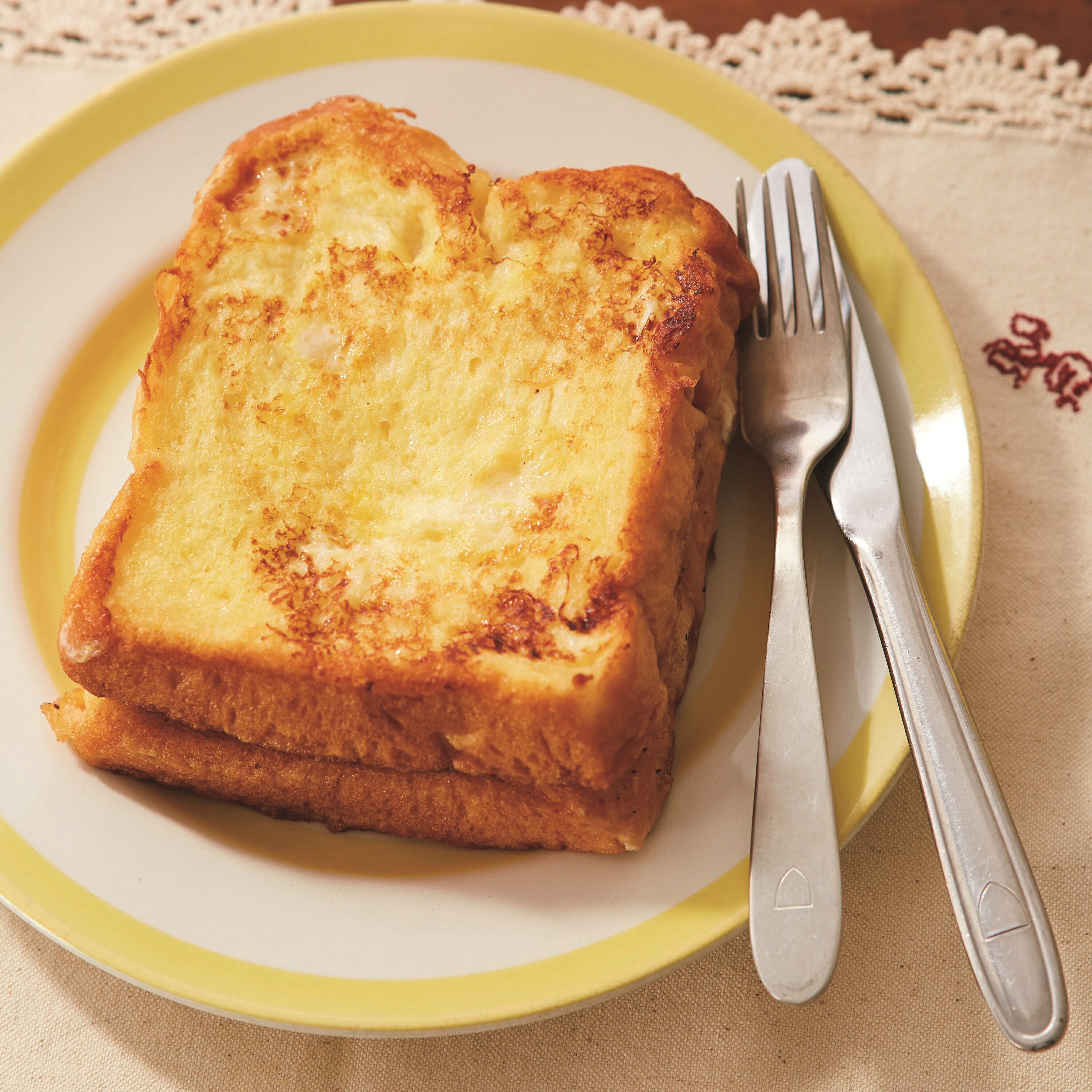 たっぷりのバターで黄金色にやきあげて。ベーコンやサラダを添えたり、クリームをつけたりしてもおいしそう。中までふわとろ!
