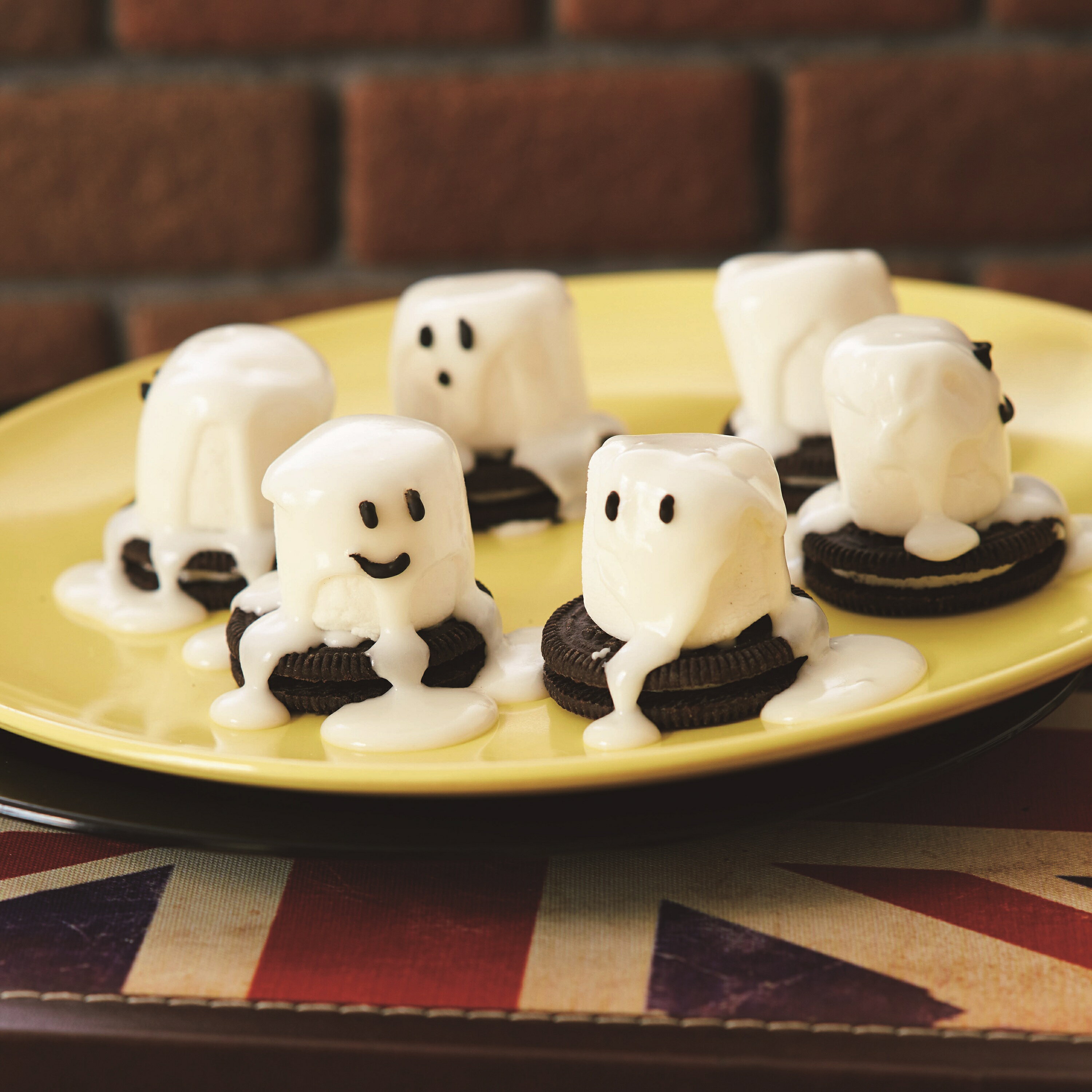 マシュマロとチョコレートクッキーで作ったかわいいお菓子。「子どもの家」の裏の墓場に集まった、ふわふわ動く白いおばけにそっくりです。