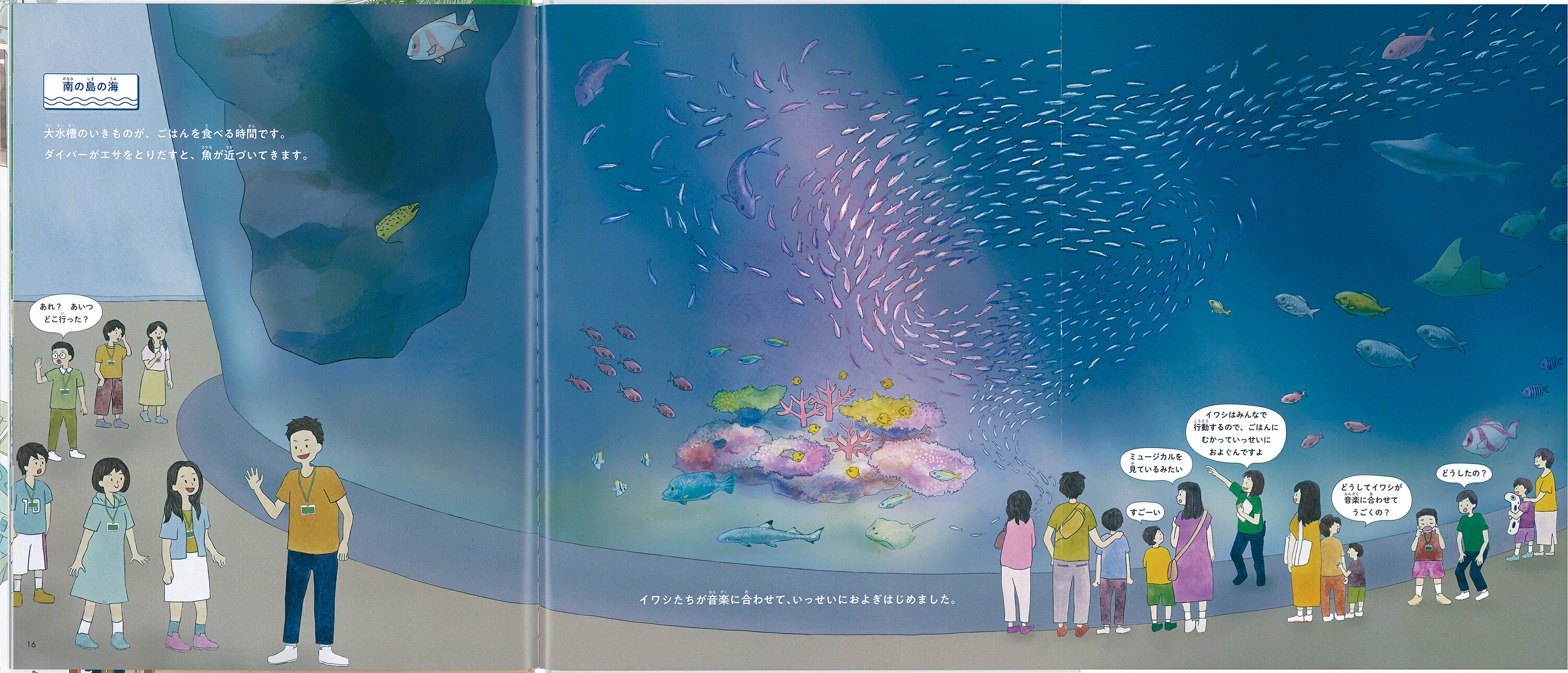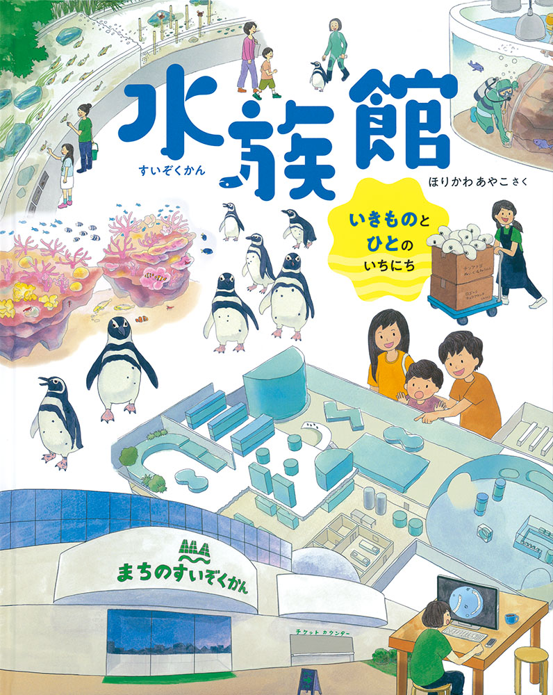 水族館ならではの機械や道具も登場。「お仕事絵本」としても楽しめる1冊です。