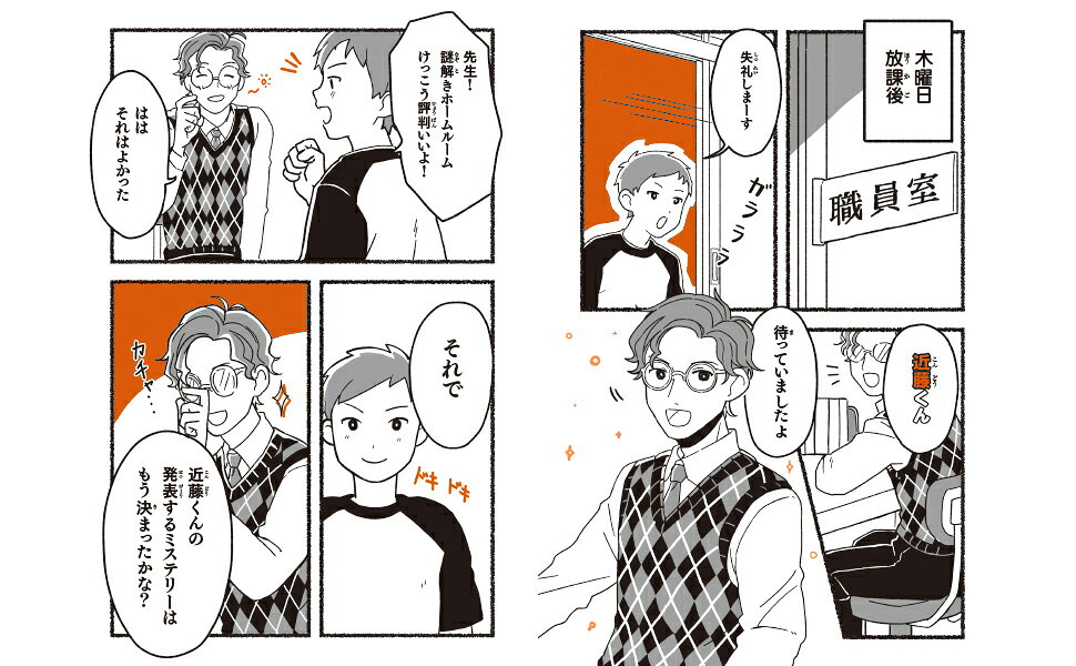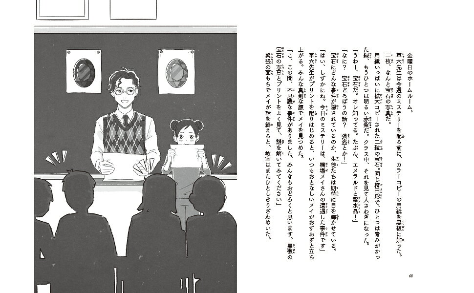 ミステリー好きの車六先生のクラスメイトたちが、毎週金曜日のホームルームで、自分やだれかが体験したミステリーを紹介し、それぞれが推理しみんなでその謎を解く。