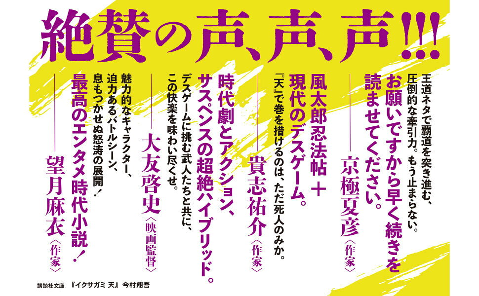 ![イクサガミ天(講談社文庫)[今村翔吾]](https://tshop.r10s.jp/book/cabinet/9862/9784065269862_1_2.jpg)