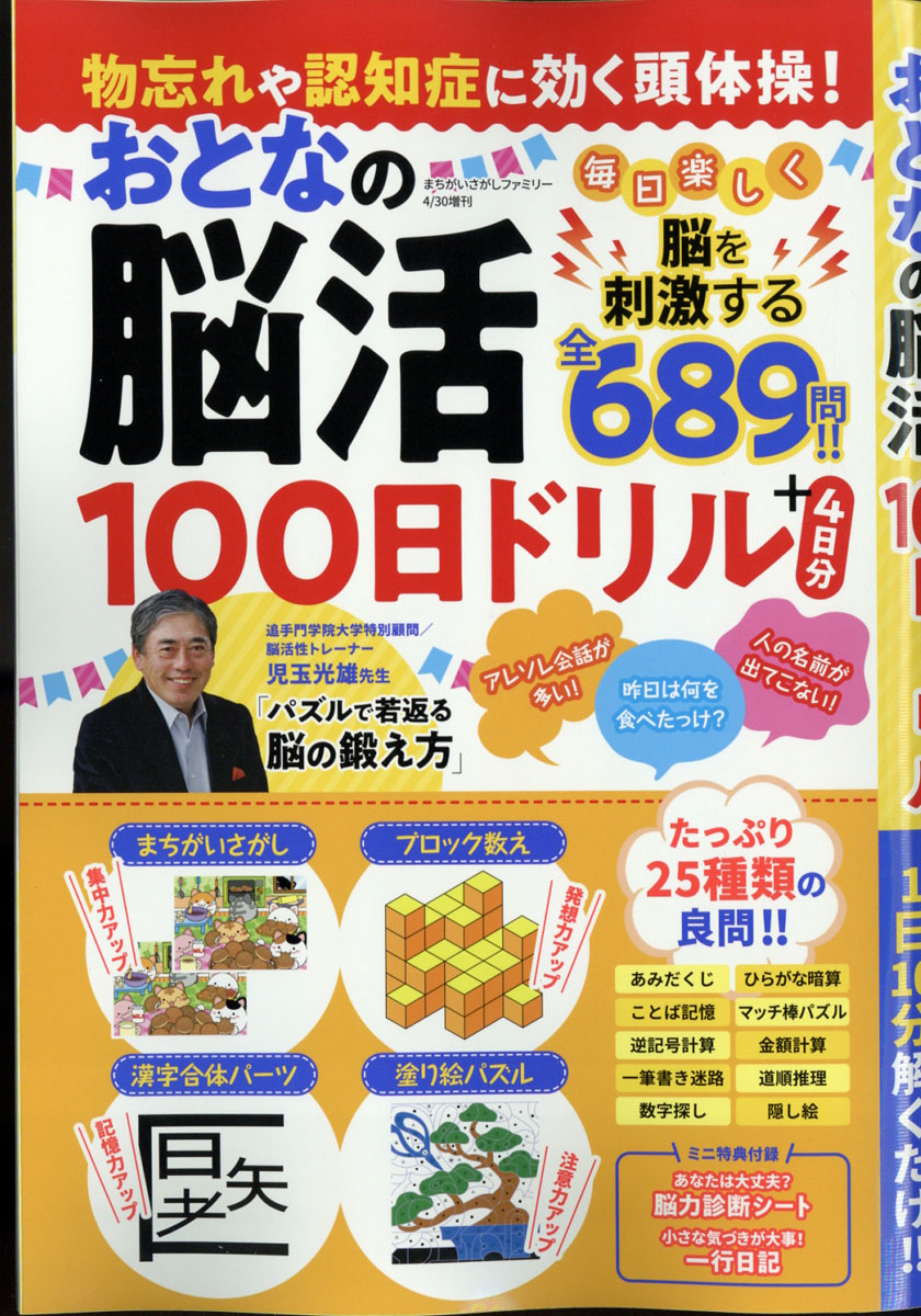 まちがいさがしファミリー増刊 物忘れや認知症に効く頭体操!おとなの脳活100日ドリル 2022年 04月号 [雑誌]