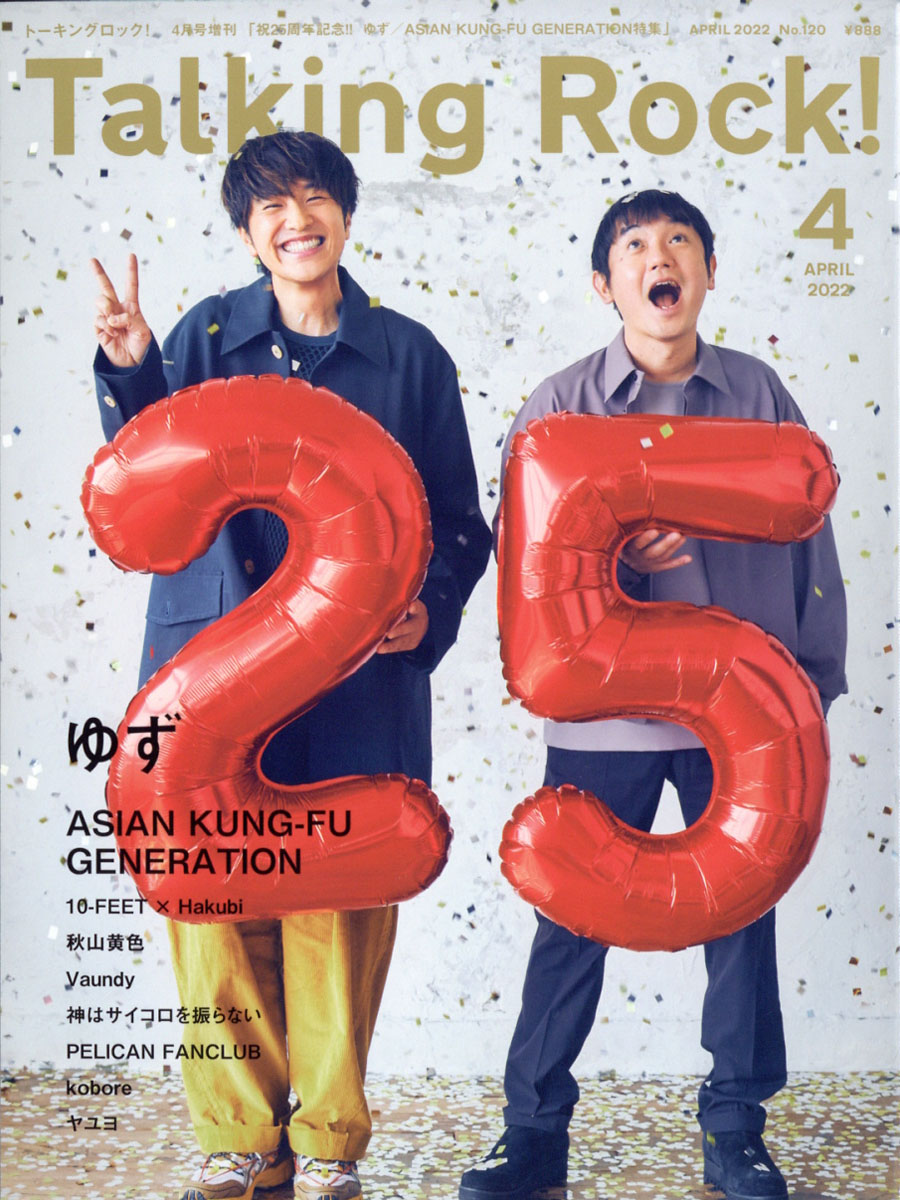 デビュー25周年を迎えた、誰もが知る存在の人気フォーデュオのゆずと、結成25周年を迎えた、こちらもシーンの第一線で活躍する人気バンド=ASIAN KUNG-FU GENERATIONをそれぞれカバー&バックカバーのW表紙で特集。いずれも3月にニューアルバムを発売(ゆずは3月23日、ASIAN KUNG-FU GENERATIONは3月30日)。その新作についてはもちろん、25年の活動の軌跡を振り返るロングインタビューで、あらためて2組の魅力をたっぷりと紹介します。その他、秋山黄色とVaundyの人気若手アーティストに、10-FEET、神はサイコロを振らない、Hakubi等を掲載します。