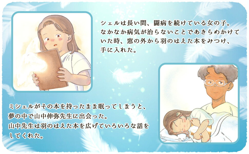 ミシェルは長い間、闘病を続けている女の子。なかなか病気が治らないことであきらめかけていた時、窓の外から羽のはえた本をみつけ、手に入れた。ミシェルがその本を持ったまま眠ってしまうと、夢の中で山中伸弥先生に出会った。山中先生は羽のはえた本を広げていろいろな話をしてくれた。