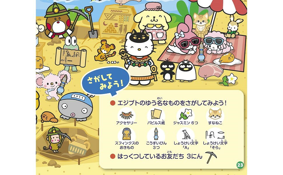 ハローキティやシナモロールをはじめとする、サンリオの人気キャラクターたちが旅をするさがし絵えほんのシリーズ第2弾・世界一周編が登場しました!