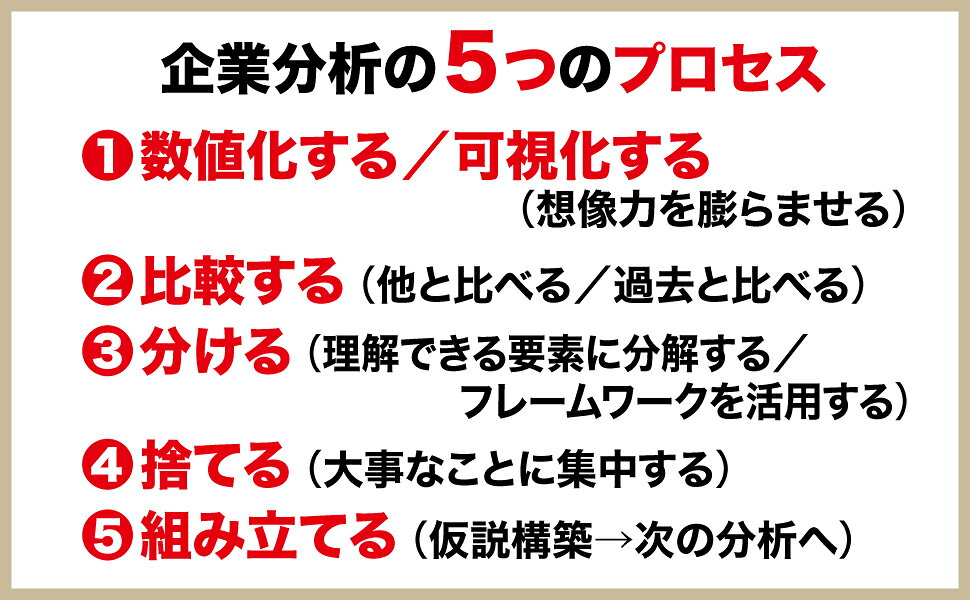 ・5つの分析法(可視化する/比較する/分ける/捨てる/組み立てる)