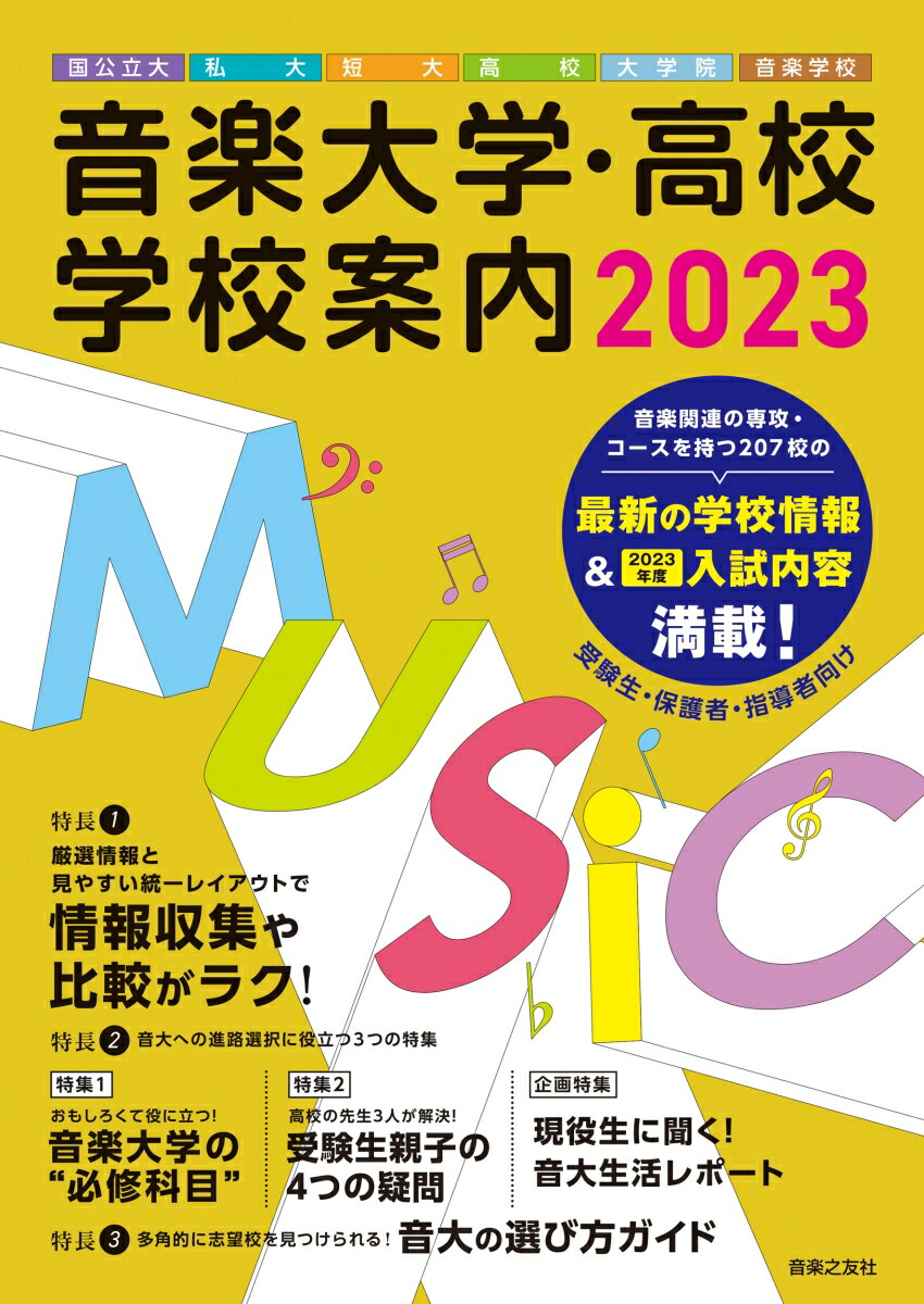 1:音楽関連の専攻・コースを持つ207校の最新の学校情報&2023年度入試内容満載!2:受験生・保護者・指導者向け