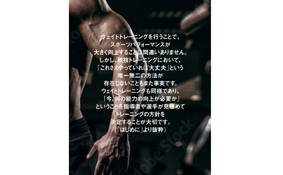 ウエイトトレーニングの指導に携わっている指導者の方、プロアマ問わずウエイトトレーニングを行っているアスリート、またトレーニング指導者を目指している学生の皆さんに競技力向上や身体づくりのために本書を活用頂きたいと思います。
