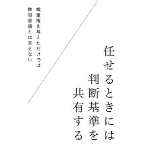 - 権限委譲における判断基準とは、仕事において何を優先させるべきかといった業務方針のこと