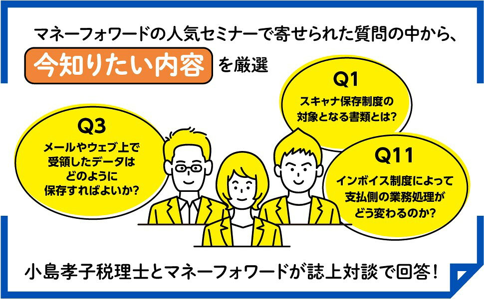 ・マネーフォワード社のセミナーに寄せられた質問から厳選した、今知りたい内容について、税理士とマネーフォワードが誌上で回答しました。