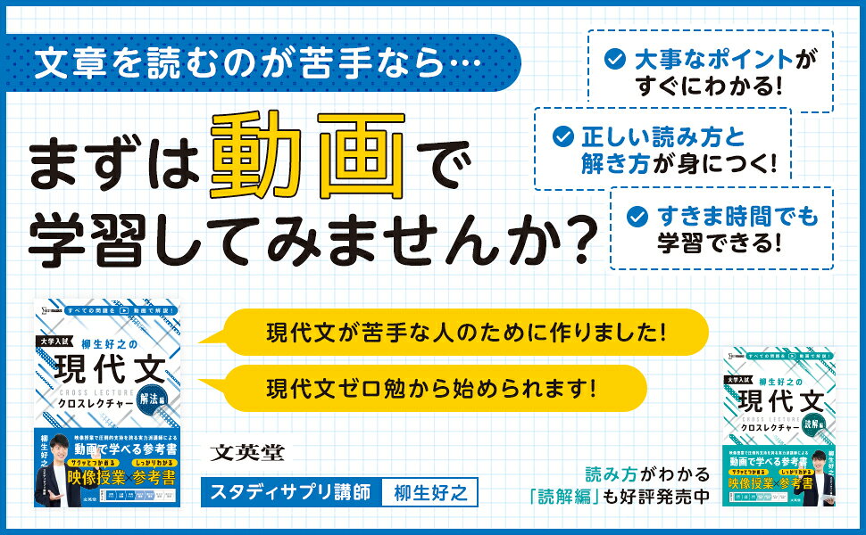 ![柳生好之の現代文クロスレクチャー解法編[柳生好之]](https://tshop.r10s.jp/book/cabinet/5094/9784578245094_1_3.jpg)