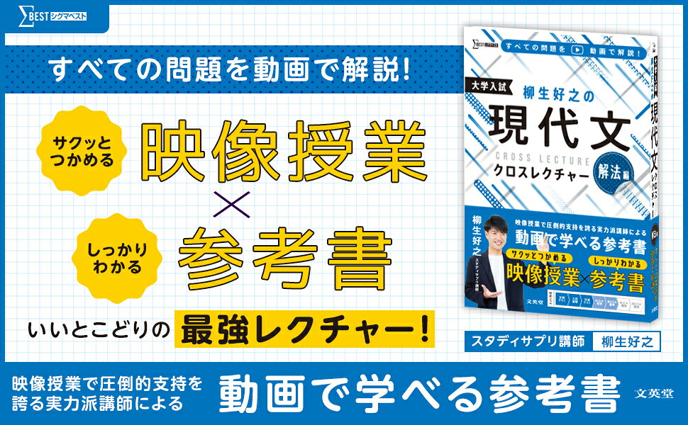 スタディサプリの超人気現代文講師・柳生好之先生による「映像授業」つきの「参考書」です!「映像授業」と「参考書」の相乗効果により、最も効率よく現代文の力をつけることができます。