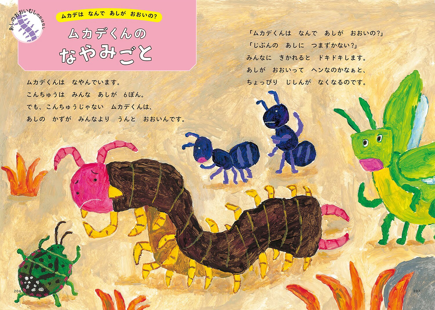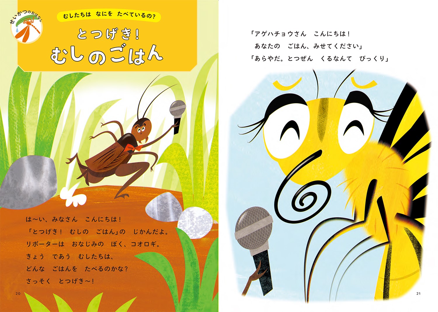 のうりょくのおはなし いちばんつよいむしはなに?むしチャンピオンけっていせん/せいかつのおはなし むしたちはなにをたべているの?とつげき!むしのごはん/すがたのおはなし きれいなむしってなにがいる?いちばんきれいなのはだれ?/しゅるいのおはなし カマキリのふしぎなポーズのりゆうは?カマキリたいそう/しゅるいのおはなし せかいにはどんなカブ・クワがいるの?カブトムシになれますように/のうりょくのおはなし なくむしはなんでなくの?つきよのうたじまん/すがたのおはなし おやこですがたがちがうむしがいるの?まいごのイモモちゃん/しゅるいのおはなし トンボのとびかたのとくちょうは?トンボツアーへようこそ!/しゅるいのおはなし チョウとガのちがいって?チョウとガのうんどうかい/しゅるいのおはなし ホタルがひかるのはなぜ?おいでよ!ホタルのぴかぴかパーティー/すがたのおはなし ほかのむしをまねるむしがいるの?そっくりさんはだーれだ?/あしのおおいむしのおはなし クモはどうしてすをはるの?クモのあみものコンテスト/せいかつのおはなし むしたちはどこにすんでるの?むしさんたちにおたよりです!/のうりょくのおはなし どうしてどくをもつむしがいるの?こんちゅうせんたいドクアルンジャー/のうりょうくのおはなし むしをヒントにしたどうぐがあるの?クイズ!おてほんはだれ?/せいかつのおはなし みずのなかでくらすむしもいるの?せんすいロボモグルンダーZ/せいかつのおはなし あめのひのむしたちはどうしているの?あめのひはかくれんぼ/せいかつのおはなし むしこぶってなあに?このみなんのみ?/あしのおおいむしのおはなし にほんにもサソリがいるの?こわ〜いサソリのちっちゃなひみつ/あしのおおいむしのおはなし ムカデはなんであしがおおいの?ムカデくんのなやみごと