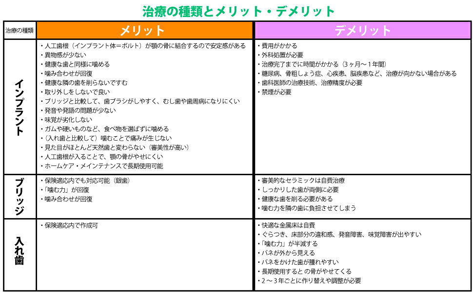 1 インプラント治療って何?/2 インプラント治療を受ける前に知っておきたいこと/3 インプラント治療の流れ/4 インプラントの治療方法について詳しく知りたい/5 インプラントの手術についてもっと知りたい/6 インプラントの手術後について教えてほしい/7 インプラント治療の理解が深まる8つの症例