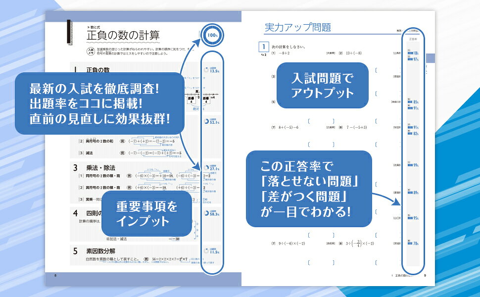 全国の入試出題率と実際の正答率がわかるので、受験勉強をとにかく効率的に進めたい人にぴったりです。