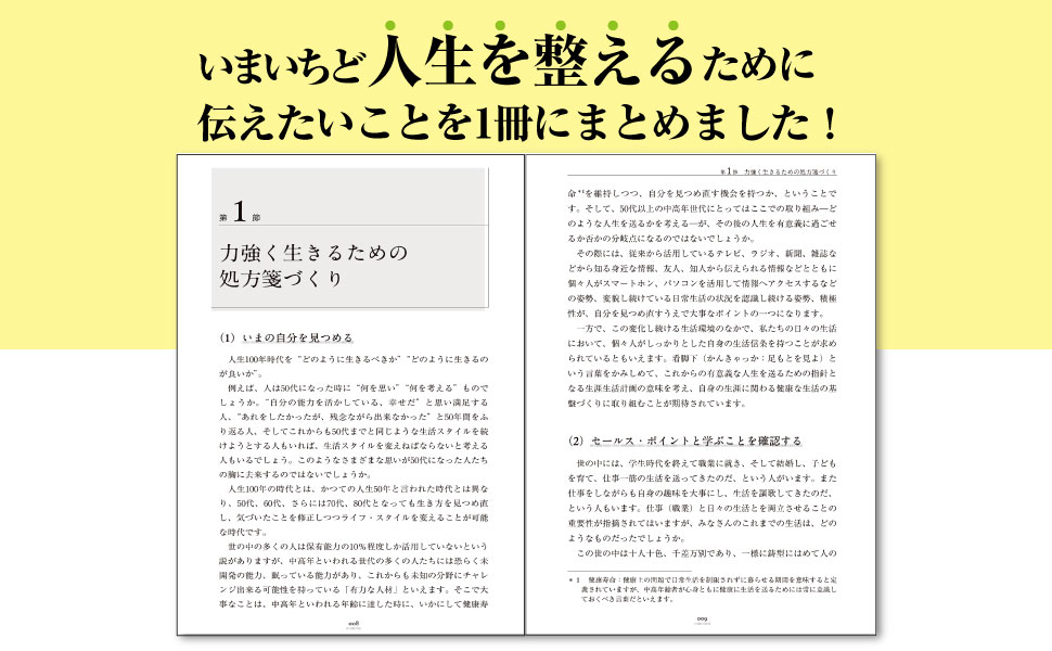 人生100年・生涯現役時代となった現在、50歳・60歳の時点で、その後の人生をどう送るか、計画をたて、行動していくことが求められています。中高年といわれる年代にとって、漠然と定年を迎えることがないよう、将来に向けての「人生を整える」ことが大切な時代になっているのです。本書は、そのためのノウハウ、知識が詰まった一冊です。