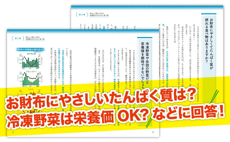 第2弾ではもっと楽しく簡単にロカボを実践できるように、血糖値が上がる食べ物、下がる食べ物をたくさん紹介。